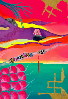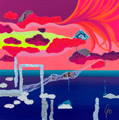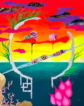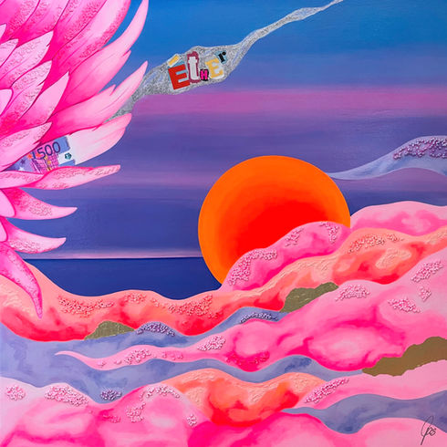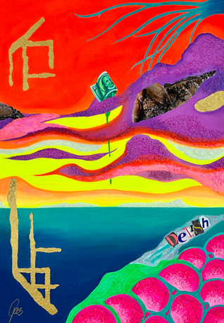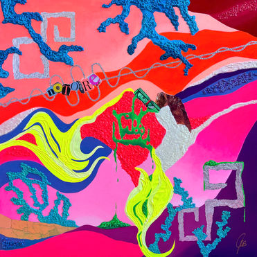 The funky series reflects the semi-abstract side of my art. There are no limits to creativity and interpretation. Neon colors act as a driving force in my work, their vibrancy unfolding through thoughtfully balanced contrasts and a curated interplay of materials such as sterling silver, 24-karat fine gold, collages and night glow colors. This creates a distinctive expression; lighthearted, provocative, vibrant and at the same time suggestive. My uniquely developed modeling compound forms a key medium, enriching the works with symbolic layers and sculptural depth. It incorporates organic materials, including rice, salt, mung beans and glass noodles, rooted in the spirituality of my Mandaya ancestors, the natives of Samal Island. Through the honoring of these material compositions, protection from evil spirits is invoked, along with blessings of good fortune, long life and prosperity. Collectors may therefore also enjoy a lifelong talisman of good luck. The spiritual traditions of my ancestors and the reverence for the fruits of earth form a bridge to the overarching message;[re]generation, our resources are finite and must be used with respect and sustainability. My art is rich in meaning and leaves generous room for interpretation. I like to describe my work as Funky Pop Art with depth and foundation.
